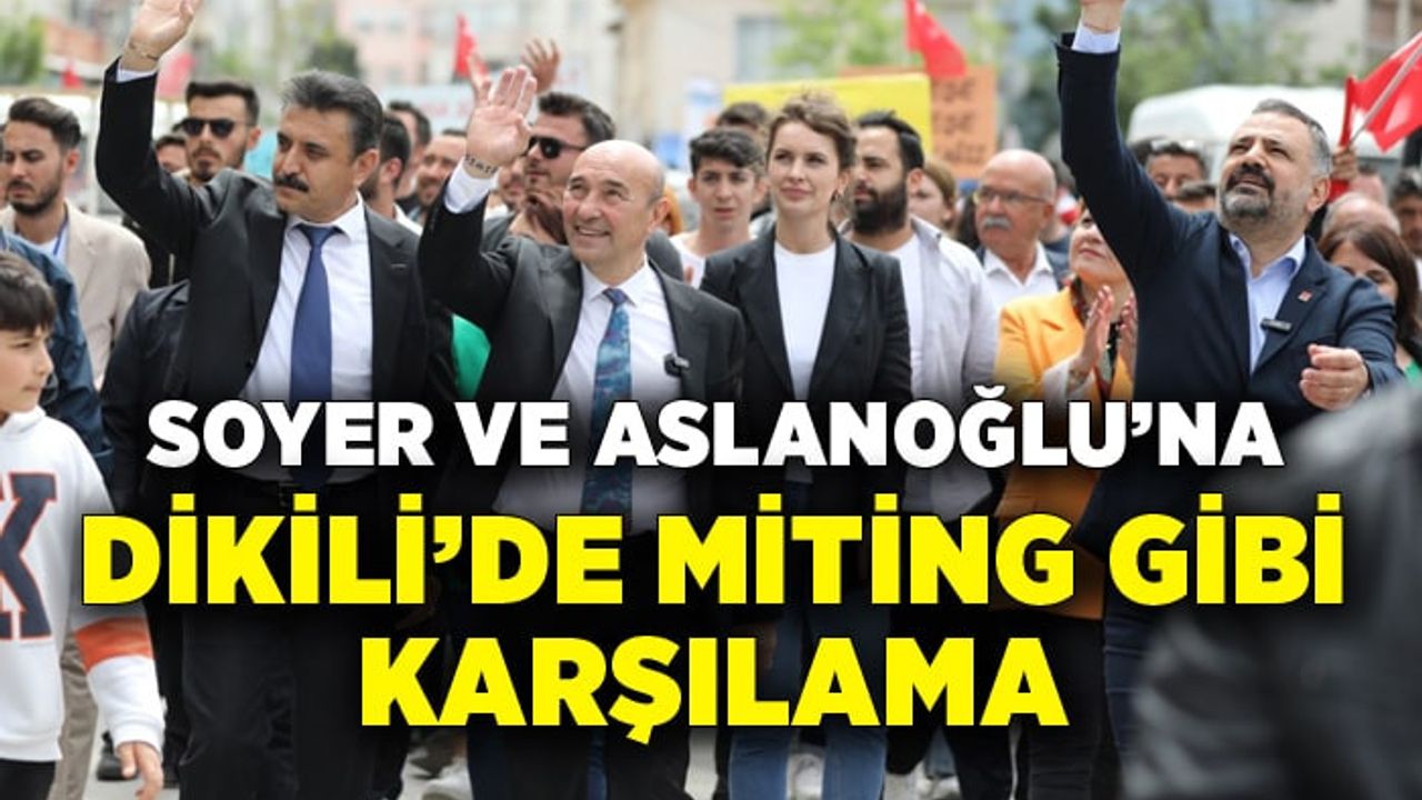 Seçim sürecinin değerlendirildiği toplantı sonrasında her iki başkan Dikili Atatürk Meydanı’nda genci yaşlısı çok sayıda vatandaş tarafından coşkuyla karşılandı. Miting havasında geçen buluşma sonrasında İzmir Büyükşehir Belediye Başkanı Tunç Soyer, CHP İzmir İl Başkanı Şenol Aslanoğlu, Dikili Belediye Başkanı Adil Kırgöz, CHP Dikili İlçe Başkanı Emre Kırlı, ilçe örgütü ve binlerce vatandaş “Halkın Umudu Kılıçdaroğlu”, “Hak, Hukuk, Adalet”, “Birleşe Birleşe Kazanacağız” sloganları eşliğinde Dikili sokaklarında yürüyerek esnafı ziyaret ettiler. Çevre ve apartmanlardaki vatandaşlar sokaklara sığmayan coşkulu kalabalığa destek verdiler.