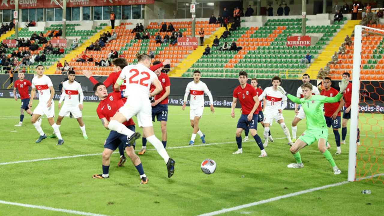 38’inci dakikada Cihan Çanak’ın pasıyla sağdan savunma arkasına sarkan Erencan Yardımcı kalecinin yanından vuruşunu yaptı. Kaleciyi geçen topu Norveç U21 savunması çizgiden çıkardı.