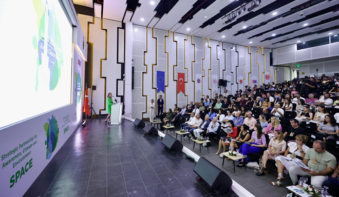 Zirvenin açılış konuşmasını yapan SPACE Proje Koordinatörü Ece Acar da, "12 aylık proje olan SPACE, gençlere ve çocuklara erişim için pek çok bileşeni bünyesinde barındırmaktadır. Yerel düzeyde iklim krizine dair hayata geçirilen iyi uygulama örneklerini yerinde inceledik. Bu uygulamalar sonucunda hem gerçekleştirmekte olduğumuz İklim Zirvesi'nin hem de bunun çıktılarıyla birlikte şekillendireceğimiz İklim Eğitim Merkezi'nin kurulumu ve tasarımı için oldukça kıymetli doneler topladık. Ülkemizden ve AB'den belediye temsilcileri ile birlikte paneller ve atölyeler ile katılımcıların aktifliğini desteklediğimiz elde edilecek çıktılar, İklim Eğitim Merkezi'nin temelini atacaktır. Merkezde çocuklar ve gençler için atölye alanları, eğitici öğretici oyun stüdyosu ve simülasyon cihazları olacaktır. Bu sayede araştırma ve beyin fırtınası yaparken gözlemleme imkanları da olacak. İklim Zirvesi'nde iki gün boyunca bizlerle olacağınız için çok mutluyuz, tüm katılımcılara teşekkür ediyoruz" dedi.