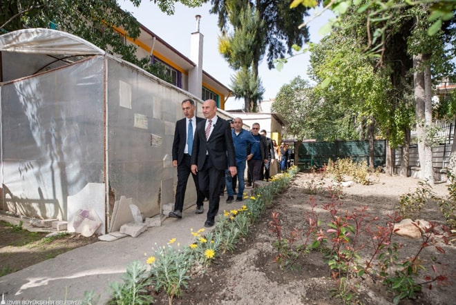 İzmir Büyükşehir Belediye Başkanı Tunç Soyer’in öncülüğünde iklim krizi ve kuraklıkla mücadele kapsamında Türkiye’de ilk olarak hayata geçirilen Sünger Kent projesi kentin dört bir yanına yayılmaya devam ediyor. Başkan Tunç Soyer Türkiye’nin su döngüsü ile yağmur suyu yönetimi yapılan ilk sünger okulu olan Bornova Çamdibi Mahallesi’ndeki Mediha Mahmut Bey Ortaokulu’nu ziyaret etti.