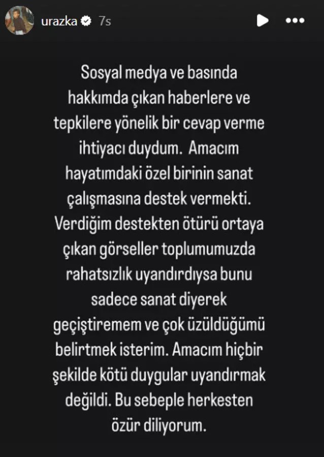 Ünlü oyuncu Uraz Kaygılaroğlu'nun tepki çeken pozlarını, sanatçı sevgilisi Sayna Soleimanpour'un ilk sergisi için verdiği öğrenildi.