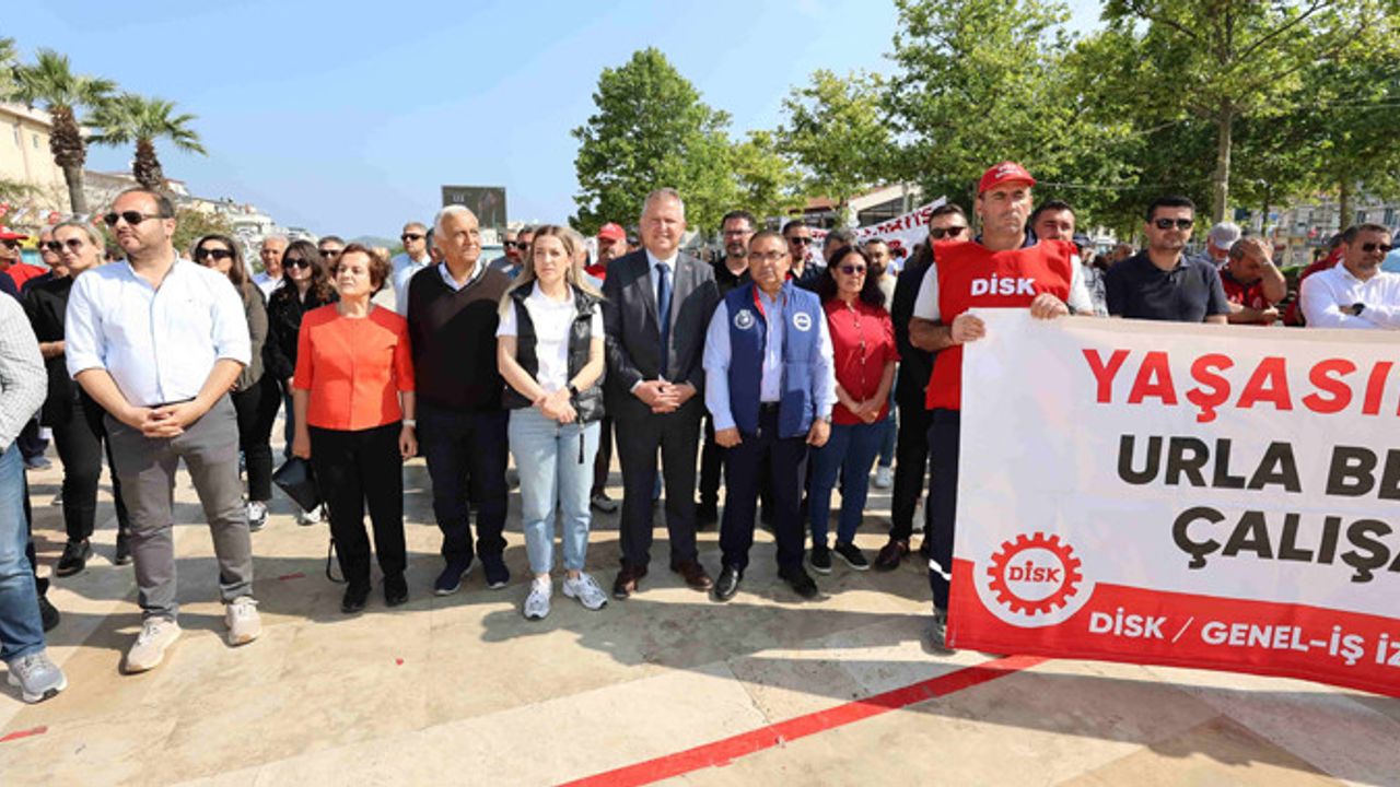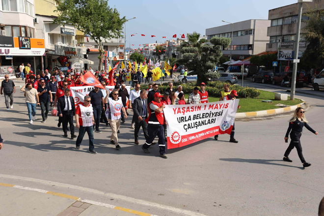 DİSK 4 No'lu Şube Başkanı Aydın Tekin, 2019 yılından sonra Urla Meydanında tekrardan 1 Mayıs kutlaması yapmanın onurunu ve gururunu yaşadıklarını belirterek, “Bizlere bu gururu yaşatan Urla halkına ve Belediye Başkanıma Selçuk Balkan’a teşekkür ederim. 1880’li yılların başlarından bugüne 16 saatlik çalışma saatlerinin 8 saat olması için hafta tatili olması için, sağlık güvencesi hakkı için, emeklilik hakkı için, sendikalaşmak için, güvenceli çalışma hakkı için bu uğurda ikballerini ve hayatlarını kaybeden sınıf yoldaşları saygıyla anıyorum” dedi.