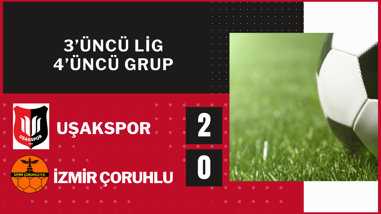 Maçın 7’nci dakikasında Tahir, ev sahibi Uşakspor’u 1-0 öne geçirdi. İlk yarıyı 1-0 galip bitiren Uşakspor 63’üncü dakikada penaltı kazandı ve atışı Batuhan gole çevirdi: 2-0. Müsabakadan 2-0 galip ayrılan Uşakspor 25 puana yükselip Play-Off yolunda umutlandı. İzmir Çoruhlu ise 9 puanda kalarak düşme hattından çıkamadı.