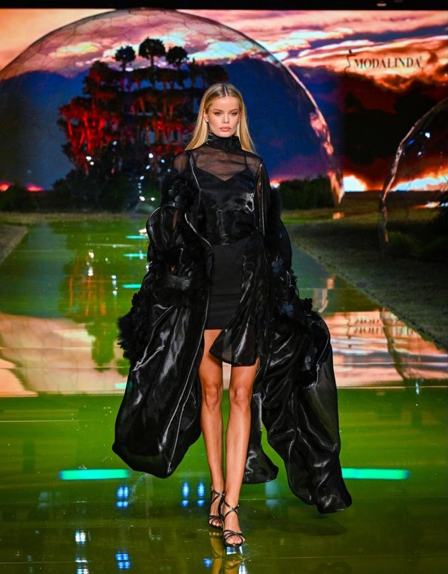 "Yeryüzü kaynaklarının doğru kullanımına dikkat çekmek amacıyla" özel olarak hazırlanan podyumda düzenlenen defilenin baş mankeni Victoria's Secret'in ünlü top modeli Norveçli Frida Aasen oldu. Aasen'e aralarında Brezilya Güzeli Maria Brechane ve Türkiye Güzeli Nursena Say'ın da olduğu toplam 70 model eşlik etti. Ünlü mankenler, Lady Estrella by Pınar Kerimoğlu, Of White ve Modalinda markalarının 2024 ilkbahar-yaz kreasyonlarından oluşan kıyafetleri başarıyla sergiledi. Defilenin finalinde ise Frida Aasen ve diğer modeller, izleyenlere sürpriz yaparak cumhuriyetin 100. yılına ithafen kırmızı kıyafetlerle podyuma çıktı. Defilede Romanya'nın ünlü şarkıcılarından Minelli de tek şarkılık performansı ile defileye renk kattı.