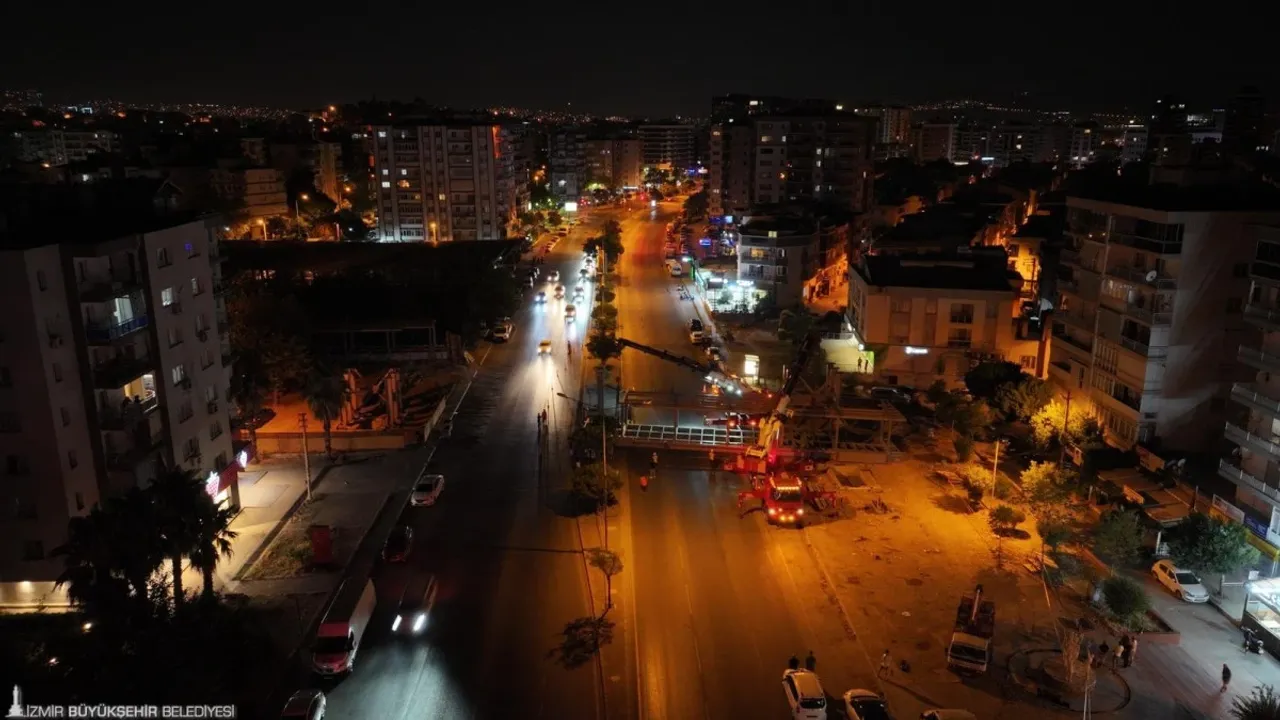 İzmir Büyükşehir Belediye Başkanı Dr. Cemil Tugay’ın kentin ulaşım konforunu artırmak için başlattığı projeler arasında yer alan Karşıyaka Yeni Girne Yaya Üst Geçidi’nin yapım çalışmalarında sona yaklaşılıyor. İzmir Büyükşehir Belediyesi Fen İşleri Dairesi Başkanlığı tarafından yapımı devam eden üst geçidin, temel ve ayak montajının ardından Soğukkuyu Mahallesi ile Örnekköy Mahallesi’ni bir araya getirecek yürüyüş platformunun montajına başlandı. Gece devam eden çalışmalarda Girne Bulvarı kontrollü bir şekilde trafiğe kapatıldı. Güvenlik önlemlerinin alınmasının ardından ekipler, vinç eşliğinde platformların montajına başladı. Yenilikçi ve modern bir yapıyla inşa edilen üst geçidin, ağustos ayı sonunda hizmete açılması planlanıyor. 50 metre uzunluğunda, 6 metre genişliğinde ve 5 metre yüksekliğinde olacak üst geçitte, 4 yürüyen merdiven ve 2 asansör bulunacak.