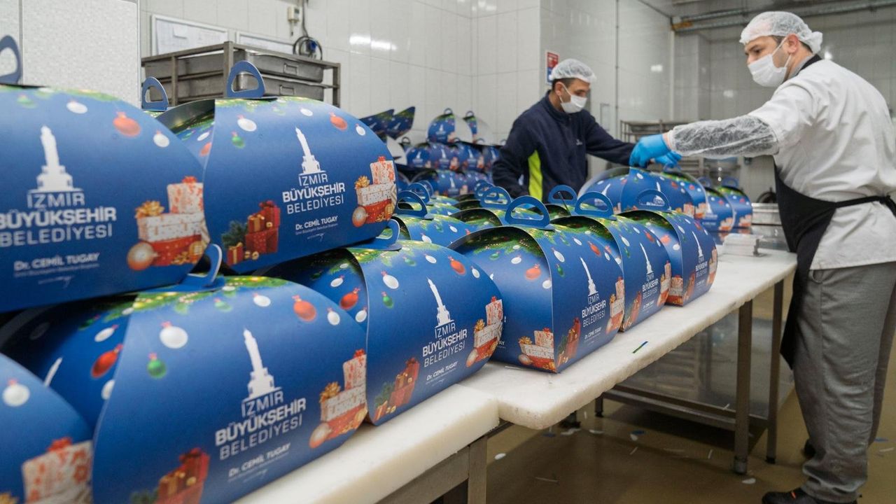 İzmir Büyükşehir Belediyesi, 2026 yılına girerken çocukları mutlu etmek için yine yeni yıl pastası sürprizi yaptı. Büyükşehir Belediyesi’nin Sosyal Yardım Takip Sistemi’nde kayıtlı haneler için İzmir Büyükşehir Belediyesi Sosyal Yaşam Kampüsü içinde hizmet veren Aşevi’nde 3 bin 20 pasta yapıldı. Dağıtıma başlanan pastaların kutuları içinde İzmir Büyükşehir Belediye Başkanı Dr. Cemil Tugay’ın yeni yıl mesajı da yer aldı.