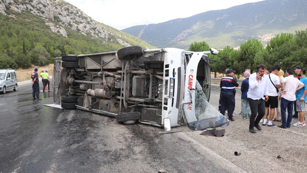 Kaza, saat 14.00 sıralarında Antalya- Denizli kara yolu Cankurtaran mevkiinde meydana geldi. Acıpayam ilçesinin Yazır Mahallesi'nden İzmir'e düğüne gidenleri taşıyan Bayram Karagöz yönetimindeki 20 KK 204 plakalı otobüs, sürücüsünün kontrolü yitirmesi sonucu yola devrildi.