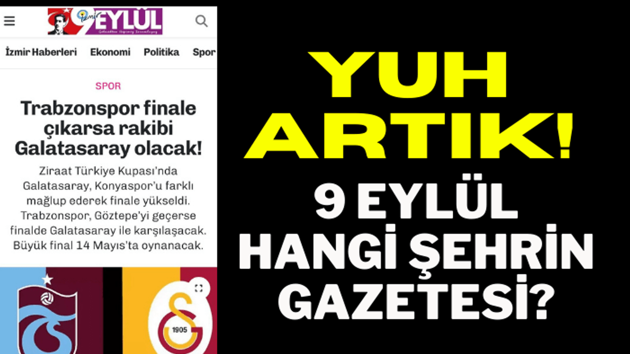 BEN HABER-İzmir Gazeteciler Cemiyeti’nin gazetesi olan 9 Eylül’de, Türkiye Kupası’nda Trabzonspor-Göztepe maçı öncesi skandal bir haber paylaşıldı. Gazetenin haber sitesinde “Trabzonspor finale çıkarsa rakibi Galatasaray olacak” şeklinde haber paylaşıldı. Haberi görenler bu "Bu nasıl İzmir gazetesi?” yorumunu yaptı.