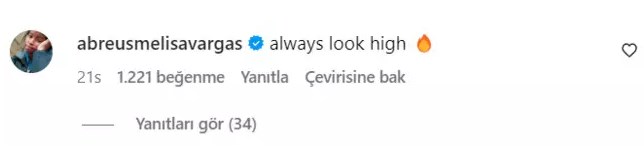 Melissa Vargas ise paylaşıma "Her zaman yüksekte görün" yorumunu yaptı.