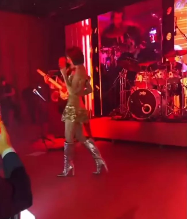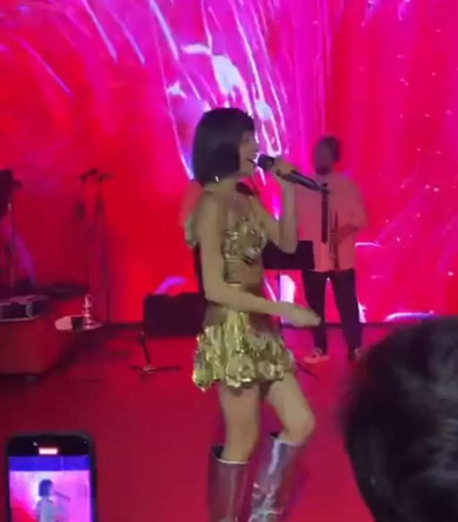 Şarkıcının mini elbisesiyle dansı sosyal medyada çok konuşuldu. Sarı renkli elbisisiyle adeta göz kamaştıran şarkıcının hayranları yorum yağdırdı.